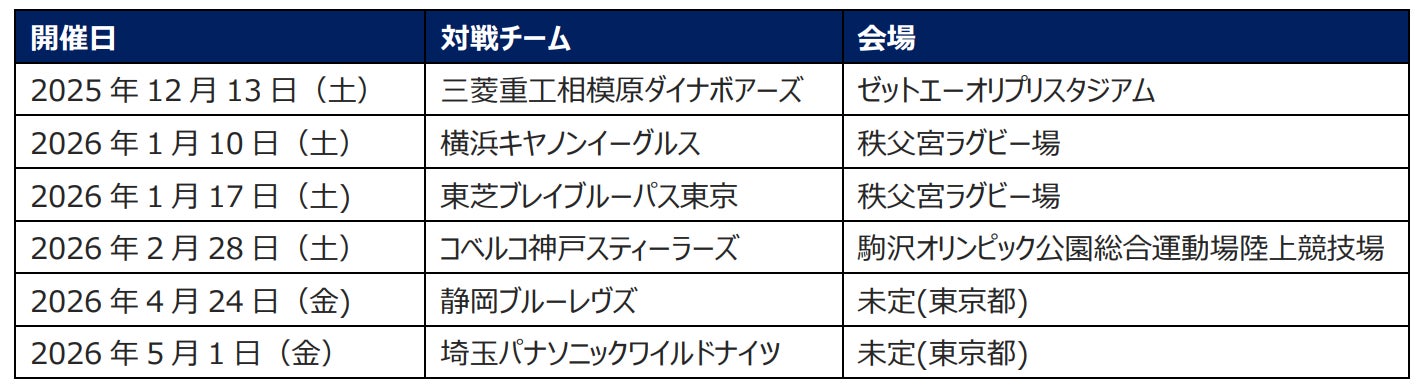 ・ 未発表の試合会場については、決定次第ご案内いたします。「2025-26シーズンパス(6試合パス)」購入後に会場が発表される場合もございますので、あらかじめご了承ください。