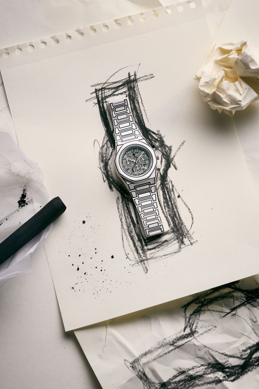トーン・オン・トーンのスケルトンダイヤルが奥行きをつくり、構造そのものがアートとして立ち上がる。