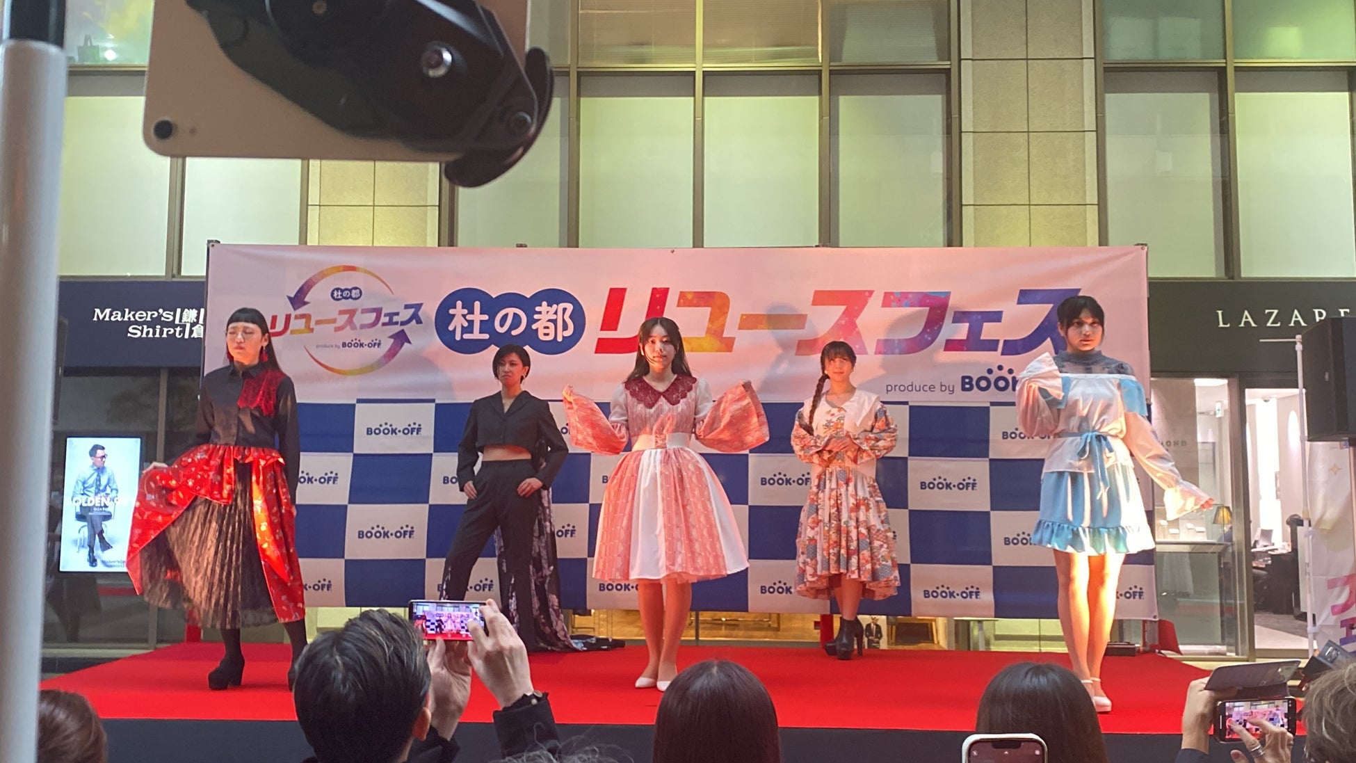 2022年3月、コロナ禍で卒業制作発表の場がなく、苦慮していた宮城文化服装専門学校の学生によるファッションショーをBOOKOFF SUPER BAZAAR仙台泉古内店にて開催し、地域の皆さまからご好評をいただいたことから、2022年秋に会場を仙台市中心部のアーケード「サンモール一番町商店街」に移し第1回「杜の都リユースフェス」を開催いたしました。以降、毎年秋に同会場にて実施、2024年からは「ぶらんど~む一番町商店街」の一部まで会場を拡張し、ファッションショー参加校も宮城文化服装専門学校、ファッション文化専門学校DOREME、東北芸術高等専修学校の3校にご出演いただいております。なお、ファッションショーで着用している衣装はBOOKOFF店舗で販売しているアパレル品をアップサイクルしています。