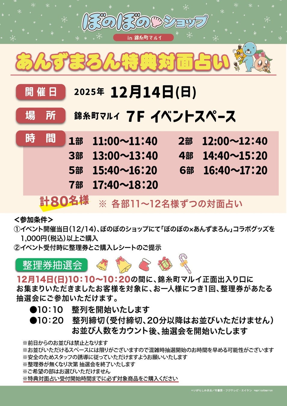 ◆ あんずまろんさん特典対面占いイベント 概要 ◆