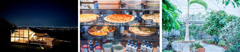敷地内にある全面ガラス張りの屋内型植物園「GLASS HOUSE」には、加古川産の食材や手作りにこだわり、直径50㎝サイズのBIGピザが名物の「COME’S Restaurant & Cafe 」があります。