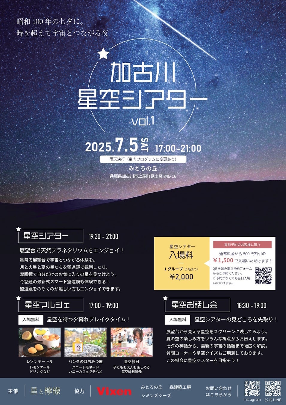 “昭和100年の七夕に。時を超えて宇宙と繋がる夜。”7月5日(土)開催「加古川星空シアター Vol.1」に協力