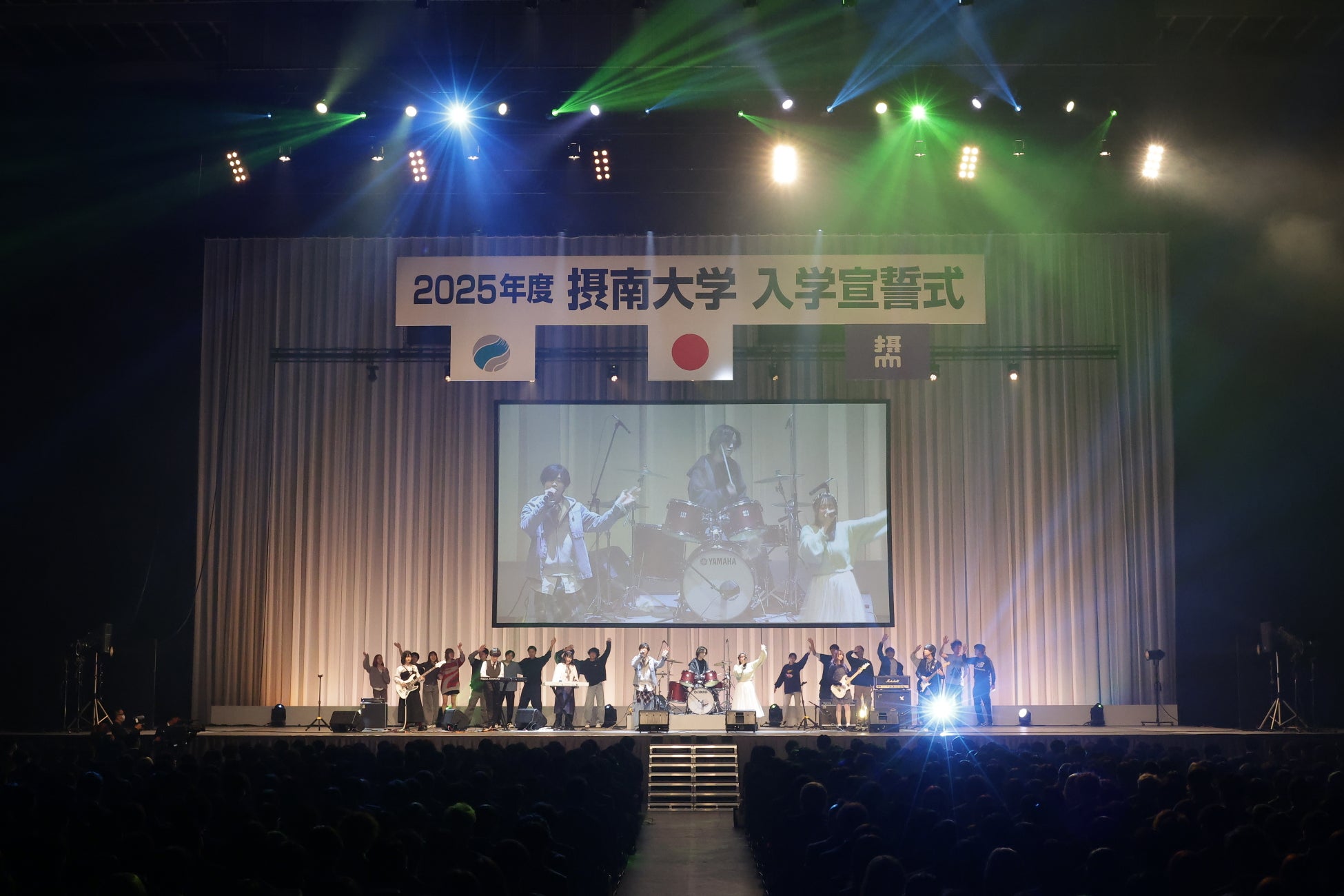 摂南大学(学長:久保康之、以下 久保学長)は、4月2日(水)に大阪城ホールにて「2025年度入学宣誓式」を執り行い、2,813人(学部・大学院合計)の新入生を迎えました。式典後には、有志の在学生と職員が約半年間かけて企画・運営してきた「新入生歓迎行事」を開催しました。期待や不安を抱えて入学する新入生に、これからの大学生活に明るいイメージを描いてもらえるよう、「ワクワク」と「感動」を伝えるメッセージやパフォーマンスを披露しました。この本学独自の取り組みは、2017年度からはじまり今回で9年目となります。