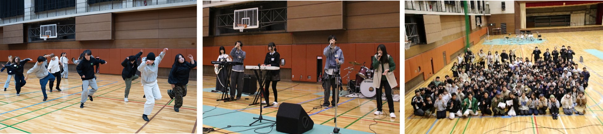 ■バンド演奏、先輩からのメッセージ、学部紹介、部活動紹介、ダンスで摂南大学の魅力を伝える