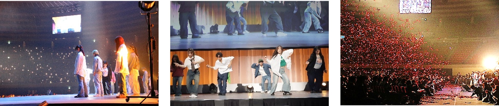 最後は、ダンスによるパフォーマンスで締めくくりました。ダンサーと共に出演者が舞台に集まり、新入生はスマートフォンのライトをつけてウェーブをして会場が一体となりました。