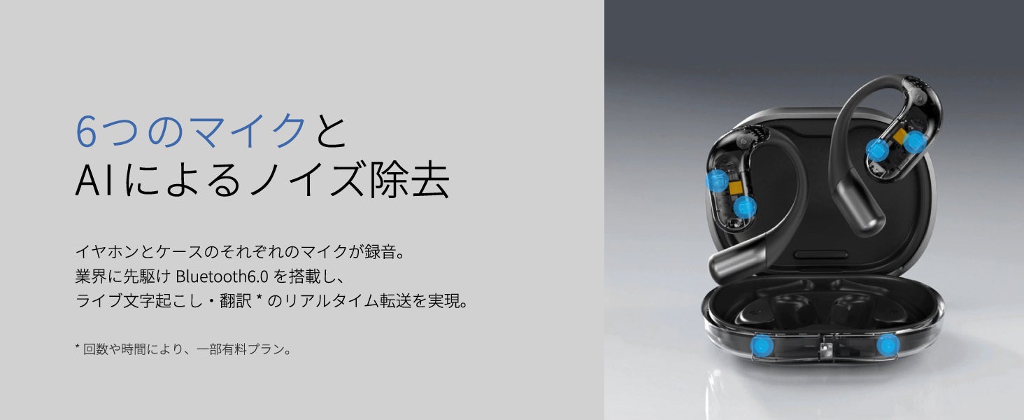 充電ケースには独立したマイクと録音用チップが内蔵。イヤホンを装着しにくい対面会議でも、テーブルに置いてボタンを押すと自然に録音を開始します。話し終える頃にはNotta AIが自動で要約。「議事録作成」から解放され、「本質的な議論」へ。