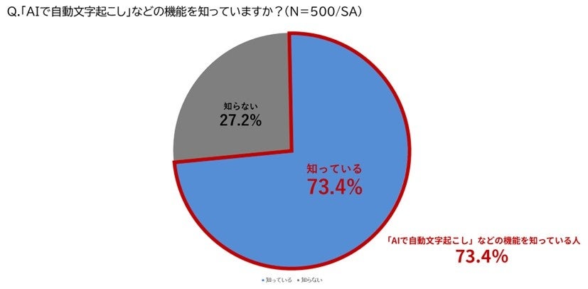 本調査では、 73.4%が「AIで自動文字起こしができる機能を知っている」と回答しました。
