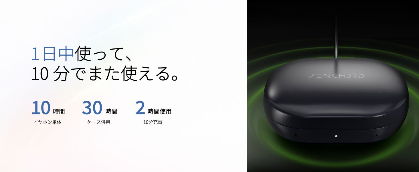バッテリー :イヤホン単体:最大10時間 / ケース併用:最大30時間