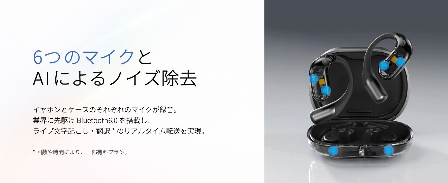 6つの高性能マイクとAIノイズキャンセリング技術により周囲の雑音を除去。人の声のみを強調してクリアに収音し、文字起こしの精度を大幅に向上させます。