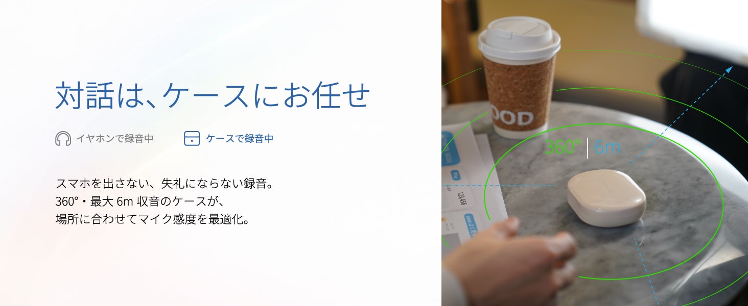 360°の高精度録音で、会話を逃さず聞き逃しゼロ