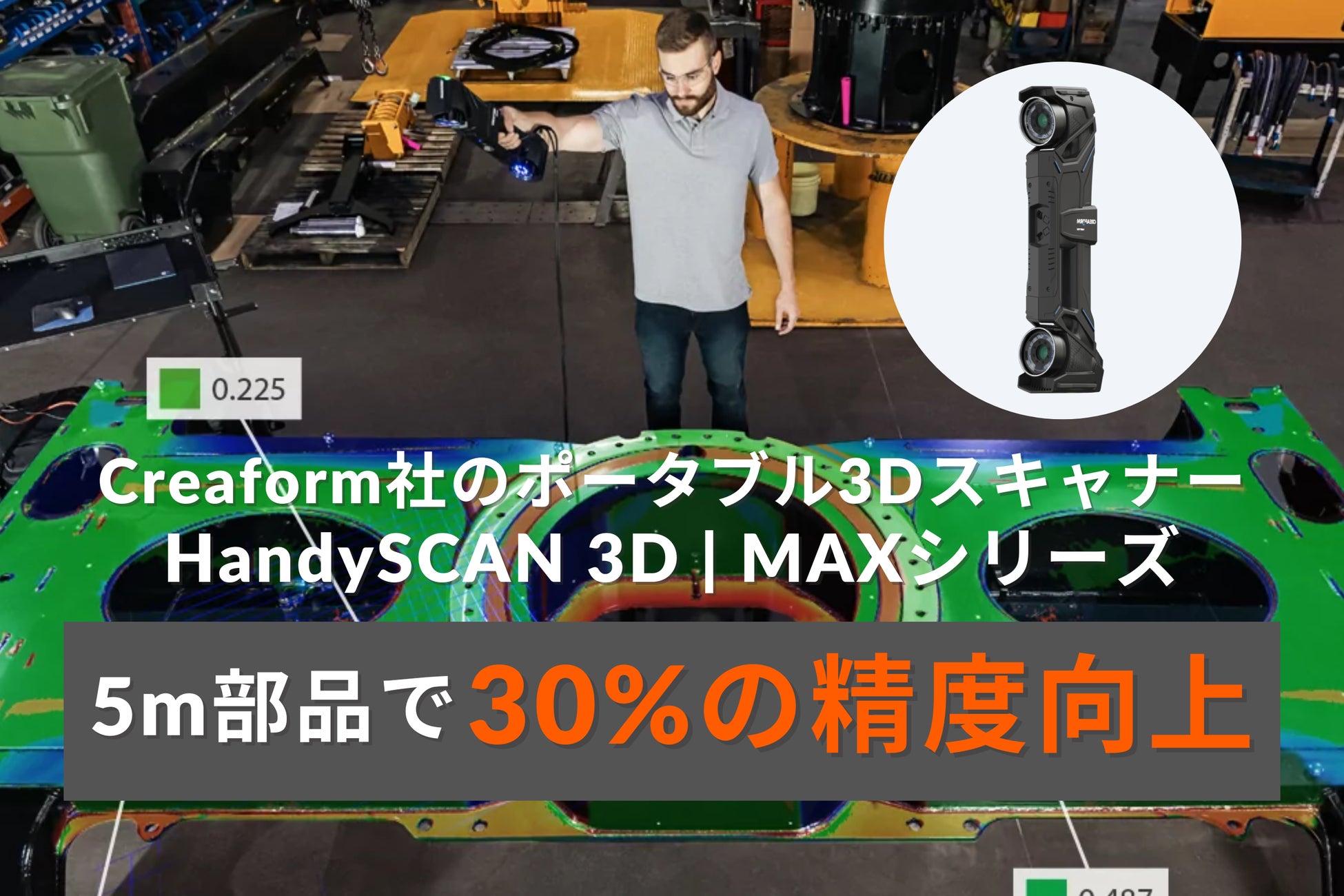 株式会社システムクリエイト(本社:大阪府東大阪市荒本新町、代表:川上正義)は、Creaform社の大型部品の測定に適したポータブル3Dスキャナー「HandySCAN 3D | MAXシリーズ」が、さらなる精度向上と新機能の追加により、より効率的な3D測定を実現することを発表します。今回のアップデートにより、大型部品の高精度測定が可能になり、製造業や重工業など、さまざまな業界での使用がさらに便利になります。