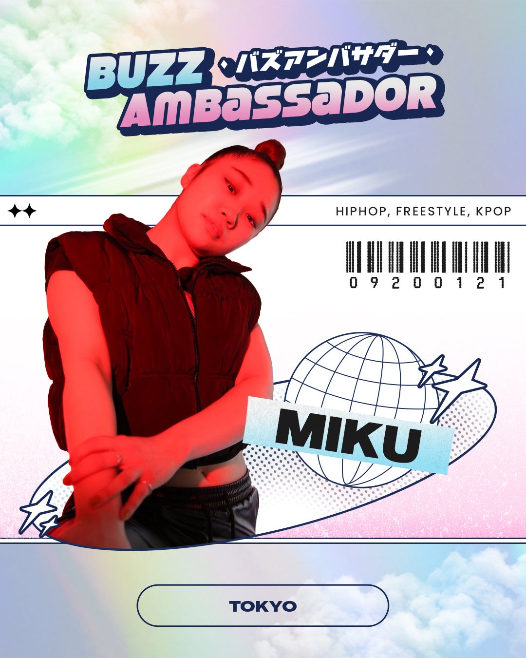 BUZZアンバサダーは、今後の活動を通じてSTUDIO BUZZの魅力やブランド価値の向上、ダンスという素晴らしいカルチャー・エンターテインメントのさらなる発展を共創いたします。