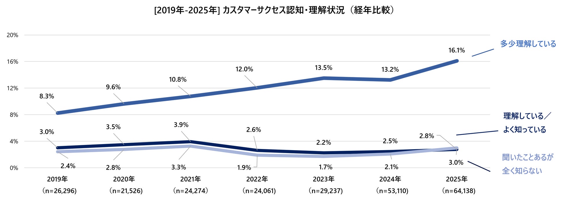 また「聞いた事がある」人の中で、カスタマーサクセスとは何かを理解している人の割合は全体の2.8%(昨年から+0.3ポイント増)にとどまるという結果となりました。