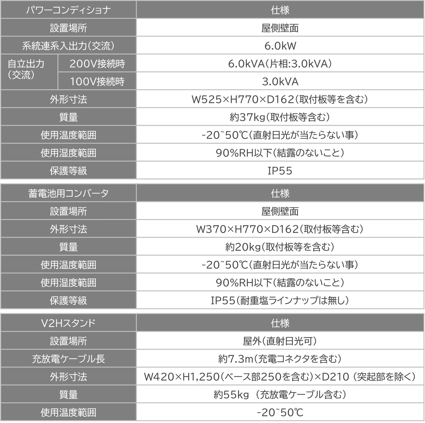 マルチ蓄電プラットフォームKPBP-A2の構成機器に関する仕様詳細については以下をご参照ください。