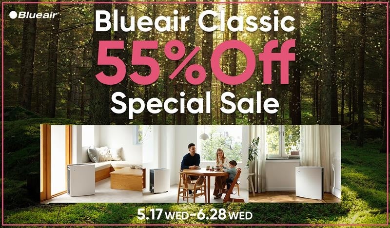 【世界基準*1No.1*2空気清浄機ブルーエア】黄砂やPM2.5が気になるこの時期 ブルーエアのスタンダードシリーズ「Blueair Classic」が最大約6万円お得になる55%OFFセールを実施!