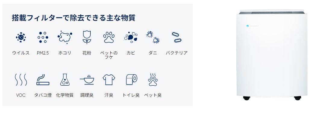 ※Blueair、Blueairロゴ、ブルーエア、HEPASilentはスウェーデンBlueair社の商標または登録商標です。