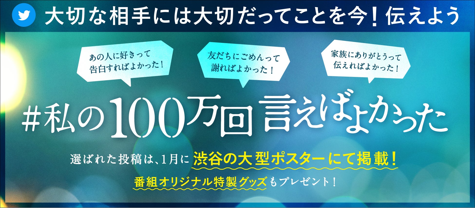 応募方法:①「@hyakumankai_tbs」をフォロー ②「#私の100万回言えばよかった」をつけてツイート
