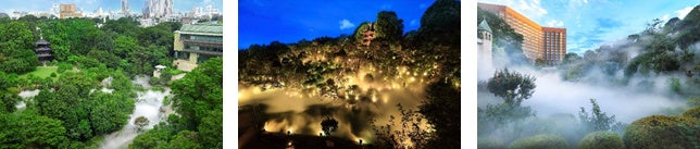 散策できる広大な庭園には、国の有形文化財の三重塔や茶室、史跡があり、また春の桜、きらめく新緑、初夏の蛍、夏の涼やかな滝のしぶき、紅葉、雪景色の中の椿と、四季の風情が東京にいることを忘れさせる特別なひとときをお過ごしいただけます。又、国内最大級の霧の庭園演出「東京雲海」も都心の絶景として通年お楽しみいただけます。
