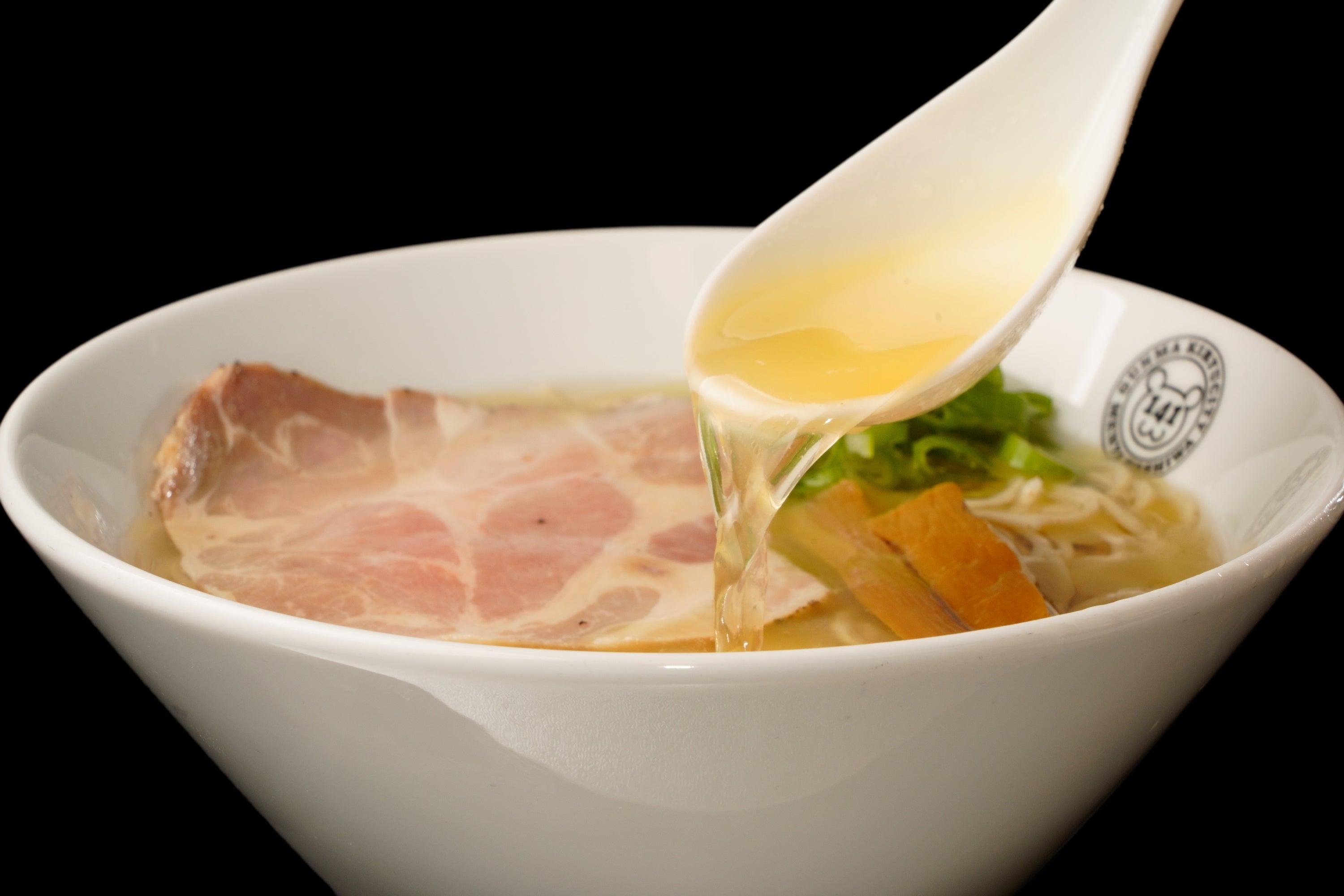その名の通り「黄金」に輝く塩スープは、顔を近づけると上品な鶏出汁が豊かに香る。動物系の旨味とこんぶの旨味が絶妙な割合で混ざり合っており、温かみがあってホッとする味に仕上がっている。合わせる麺は、艶やかでツルツルと啜ることができる古平製麺特注の細ストレート麺。小麦の風味が力強く感じられるが、優しいスープとの対比が生まれて、ラーメン全体のバランスは絶妙な位置で保たれている。これは実力のあるラーメン店だからこそ為せる技。燻製ロースチャーシューやメンマも重要なポイント。これも店主がラーメンを研究し尽くし、こだわり抜いた賜物だ!