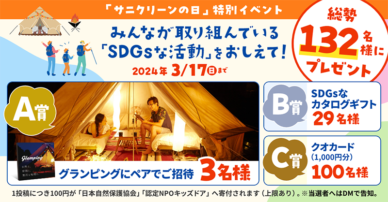3月29日はサニクリーンの日!「みんなが取り組んでいるSDGsな活動をおしえて!」イベント開催中!