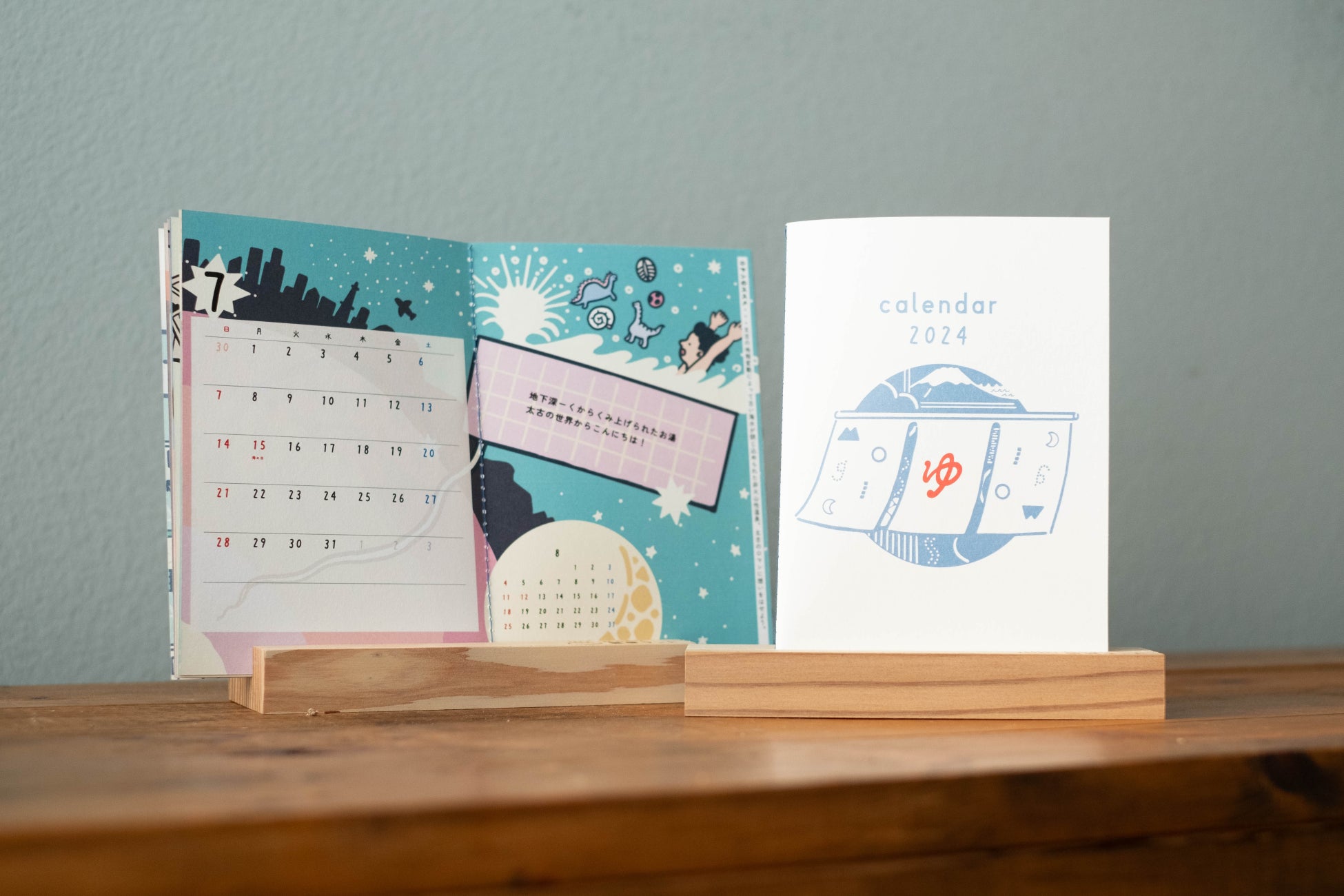 Mogicの経営テーマの一つでもある「健康」を題材に、「健康ランド」をモチーフにしたカレンダーです。毎月めくっていくたびにMogic健康ランドのいろいろなスポットに引き込まれていって…。12ヶ月経つころには心も身体もすっかり健康になっていたらいいな、という思いを込めました。