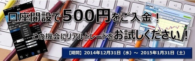 SBI FXトレードが提供する外国為替証拠金取引「SBI FXTRADE」は、2014年12月31日(水)より新規に口座開設頂いたお客様を対象に500円入金企画を実施しました。