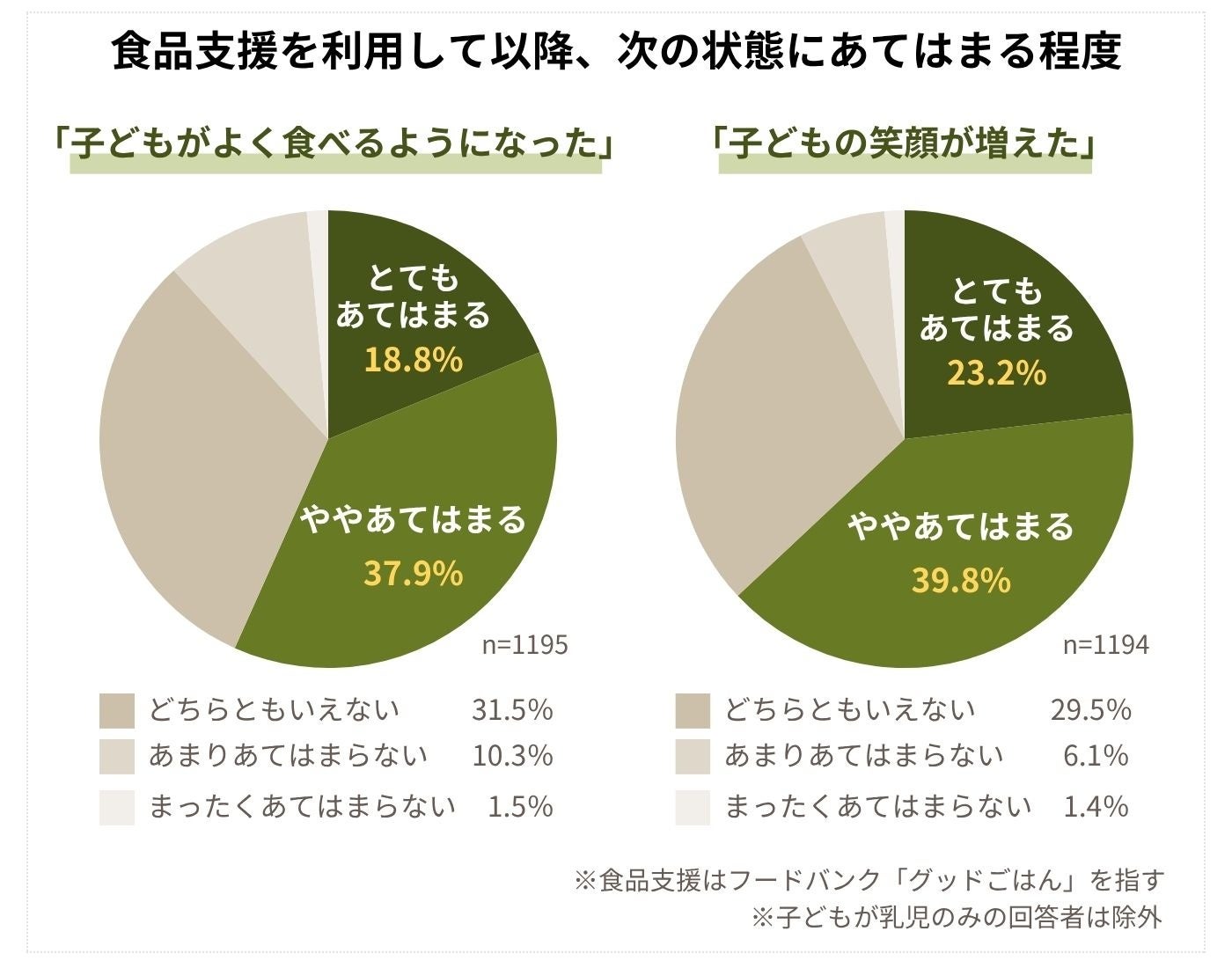 本アンケートでは、フードバンク「グッドごはん」の利用を通じて、家庭内に生じた変化についても調査しました。