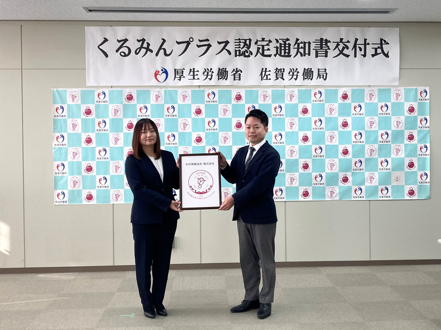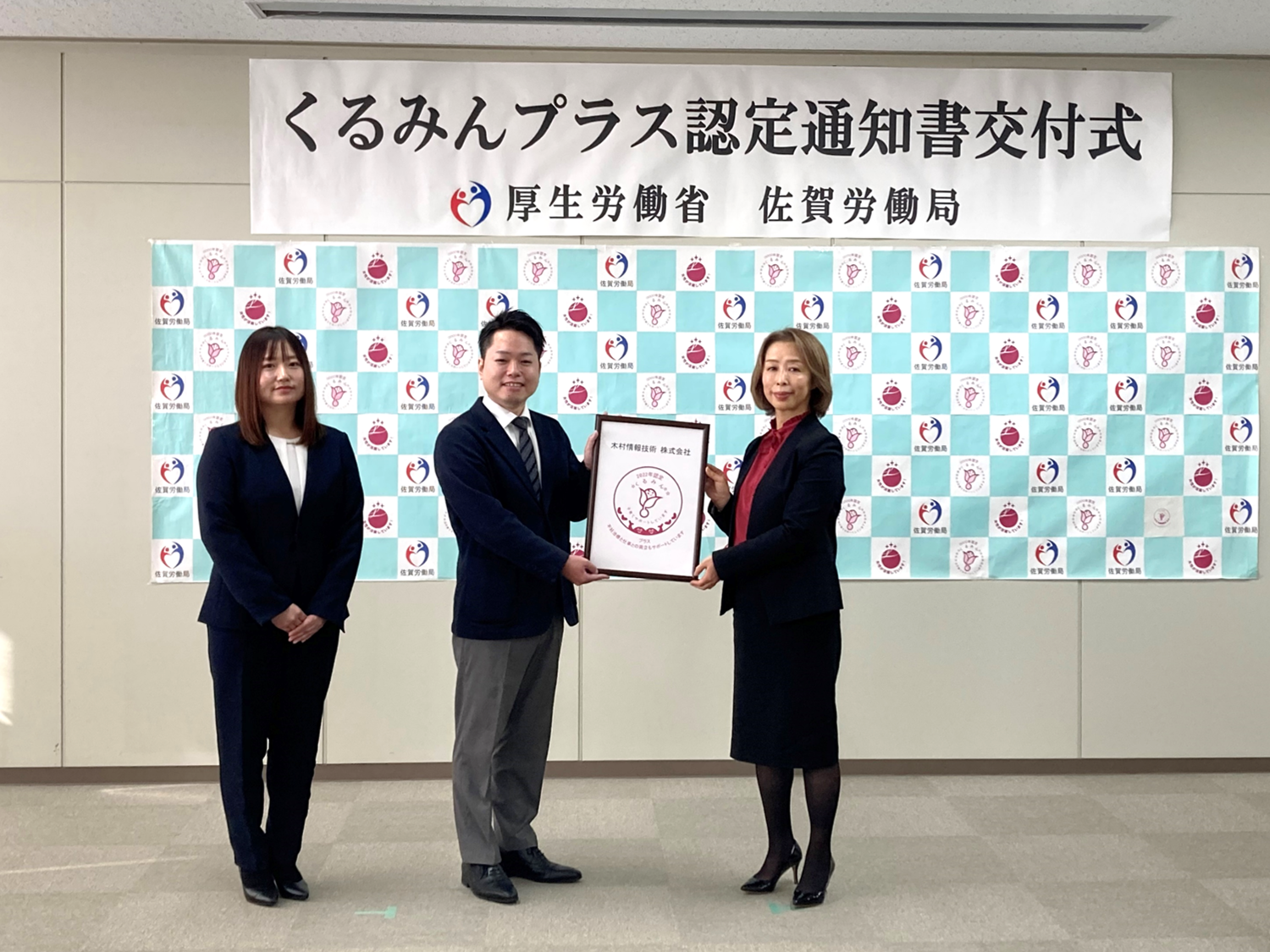 木村情報技術株式会社(本社:佐賀県佐賀市、代表取締役:木村 隆夫、以下「木村情報技術」)は、次世代育成支援対策推進法(※1)に基づき2022年4月から新しくスタートした認定制度「くるみんプラス認定」企業として、佐賀労働局より「くるみんプラス認定」を取得しました。