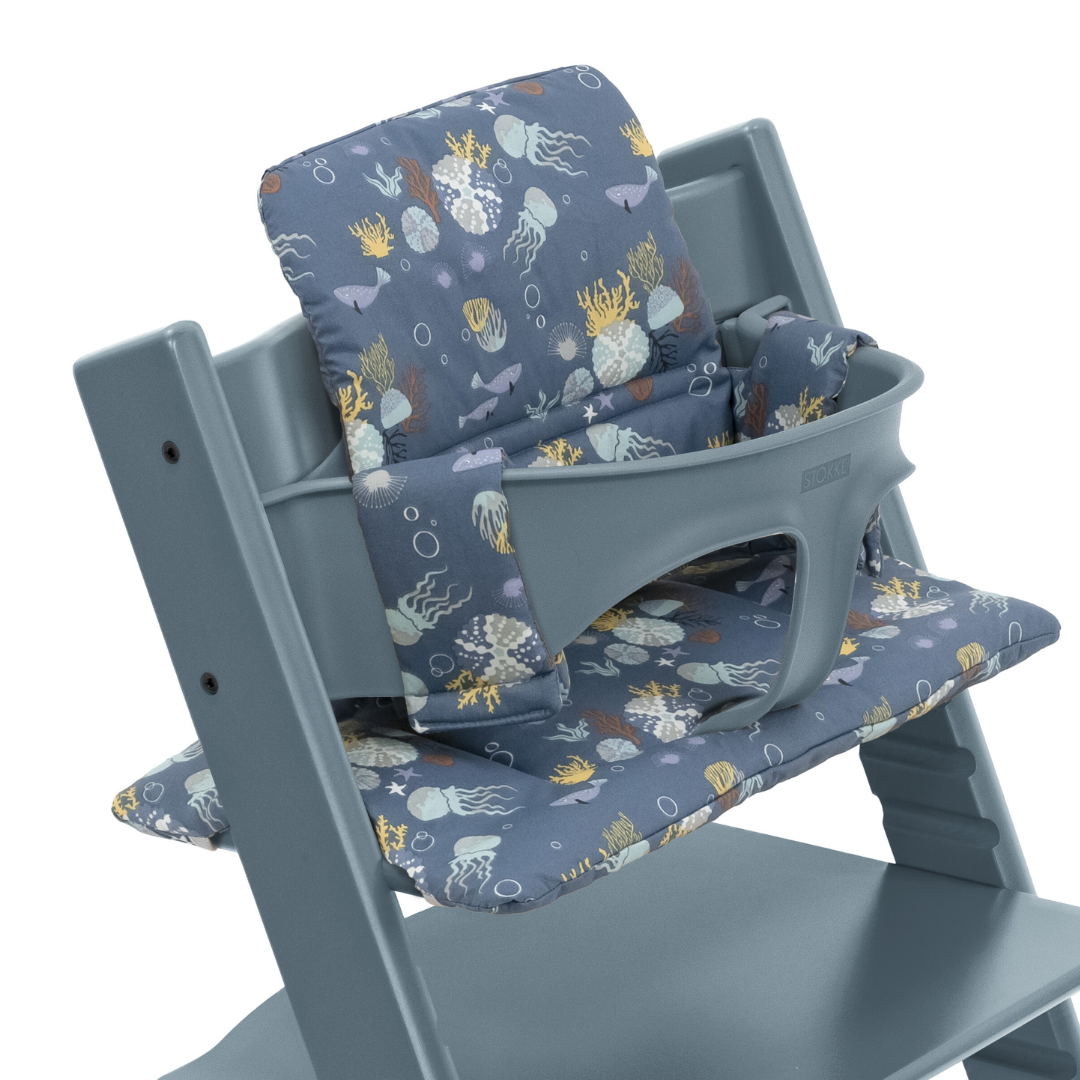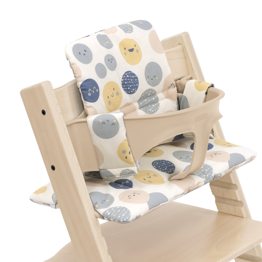 子どもと一緒に成長していくイス「トリップ トラップ」は大人までずっと使える一生もの。大切に使うためにも、食べこぼしなどからチェアを守り、快適性をアップさせるマストアイテムのクッションをぜひ手に入れて。