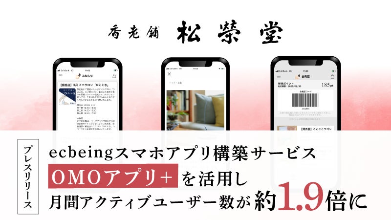 松栄堂がecbeingスマホアプリ構築サービス「OMOアプリ+」を活用し月間アクティブユーザー数が約1.9倍に
