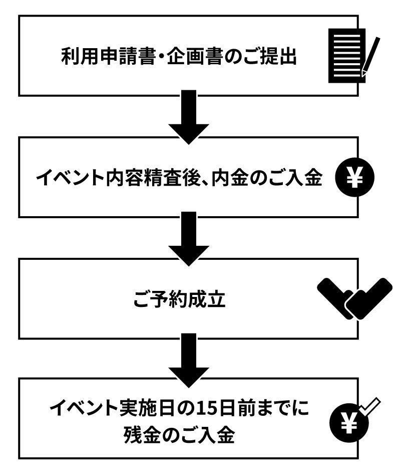 ※イベント内容や開催方法等に制限があり、企画書の審査結果によりご要望に沿えない場合がございます。
