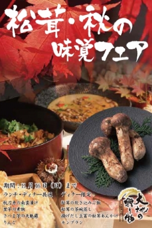 株式会社 ダイヤモンドダイニング(本社:東京都港区、代表取締役社長:松村厚久)が運営する上野の和食ビュッフェレストラン『大地の贈り物』では、秋の味覚の王様 “まつたけ”を目玉に秋の味覚を取り揃えた「松茸・秋の味覚フェア」を9 月4日(木)~11 月16 日(日)の期間限定で開催いたします。