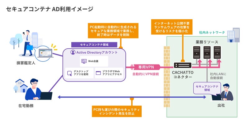 e-Janネットワークス株式会社(本社:東京都千代田区、代表取締役:坂本史郎、以下「e-Janネットワークス」)は、株式会社トラストクレームサービス(本社:東京都港区、代表取締役:奥田邦彦、以下「トラストクレームサービス」)が、ハイブリッドワークプラットフォーム「CACHATTO(カチャット)」を基盤に提供されるデータレスクライアント「セキュアコンテナ AD」を導入したことを発表いたします。
