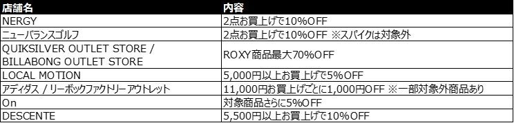 アウトレット日本初出店13店舗、関東初出店3店舗を含む約170店舗。