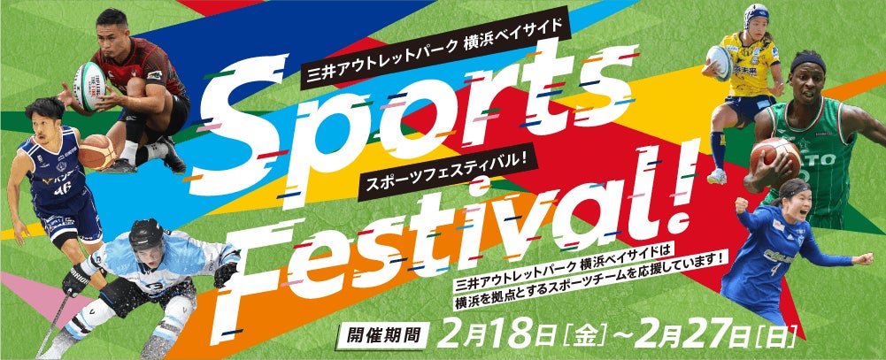 三井アウトレットパーク 横浜ベイサイドは、2022年2月18日(金)~2月27日(日)の期間、「三井アウトレットパーク 横浜ベイサイド Sports Festival!」を開催いたします。横浜市をホームタウンとするさまざまなスポーツチームや館内スポーツ店舗と連携し、地域に根差したスポーツ普及の取り組みを実施いたします。この機会にぜひお越しください!