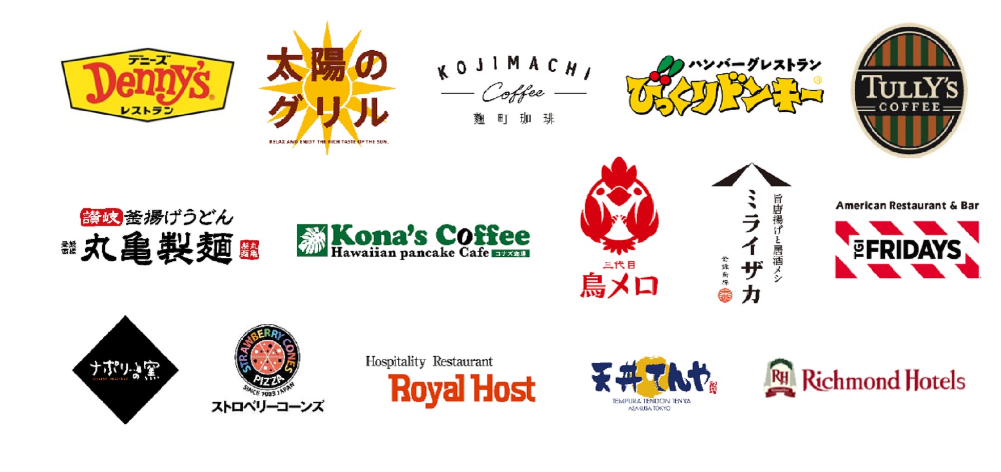 | 株式会社セブン&アイ・フードシステムズ | デニーズ、太陽のグリル、麹町珈琲(麹は旧字体) |