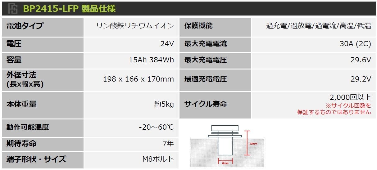 型式「BP2415-LFP」と「BP2421-LFP」の2つを発売開始。