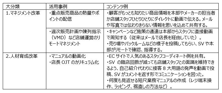 マネジメント改革ではバイヤーの想いをダイレクトにスタッフに伝え、接客技術や売場提案のスキルアップが可能になっています。今後はバイヤーとスタッフ双方向のコミュニケーションツールとしてMD改革、販促施策の最大化に繋げていく事が課題です。