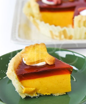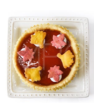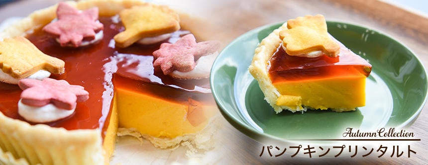 もみじとイチョウのクッキーを飾り付けたパンプキンプリンタルト。ぷるんとして甘みのあるかぼちゃプリンとサクサクなタルト生地は相性ばっちり。プレゼントにもおすすめです。