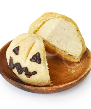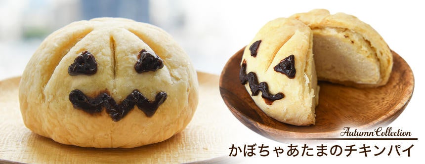 ジャック・オ・ランタンの形をしたチキンパイ。中には鶏肉をぎっしり詰めて食べ応えも十分です。美味しくハロウィン気分を味わっていただけます。