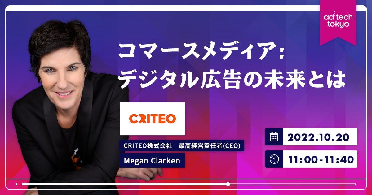 大きな変化というものは、マーケターを前進させることもあれば、後退させることもあるかもしれません。この基調講演では、コマースメディアで世界をリードし、22,000もの広告主に確かなコマースの成果をもたらしてきたCriteoのCEOメーガン・クラーケンが、マーケターが今日、そして次のデジタル広告の時代において、いかにしてコマースメディアの波を乗りこなすことができるかを話します。