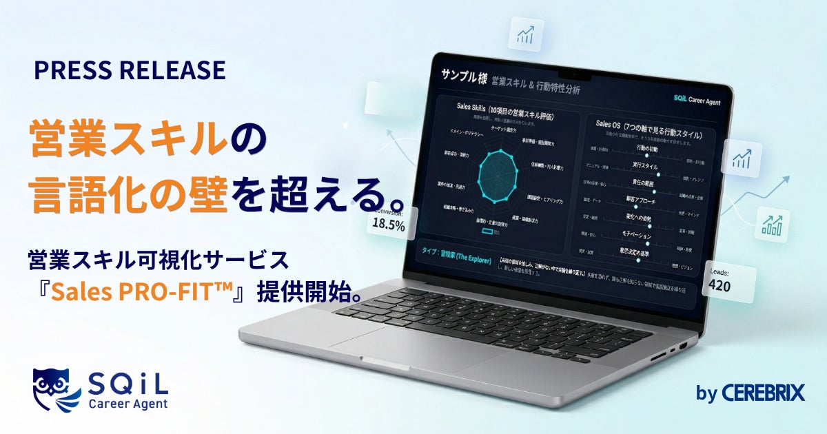 株式会社セレブリックス(本社:東京都江東区、代表取締役社長:北川 和毅)は、営業職に特化した転職支援サービス「SQiL Career Agent」において、入社後のミスマッチをなくし、求職者の活躍と企業の定着を両立する本質的なキャリア支援の実現に向け、営業スキルを可視化する新サービス『Sales PRO-FIT™』および独自のアセスメントシート『セールスバイタルシート™』の提供を開始しました。