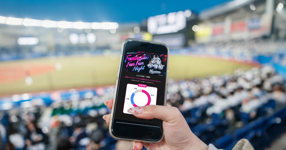 正式リリースに先立ち、「Anywhere Widget」は2025年4月23日に開催されたプロ野球球団「千葉ロッテマリーンズ」様の冠試合イベント「THE REVENUE presents Fantastic Fan Fan Night」にて運用されました。「Anywhere Widget」は、どのチームを応援しているかを選択する投票企画において、リアルタイムな投票状況の可視化を実現しました。