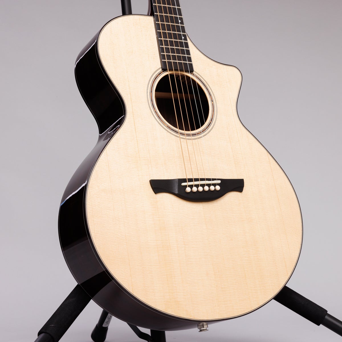 ボディトップの素材には、色素の薄いセレクテッドルッツスプルースを採用。美しい見た目と、ルッツスプルースが持つハリのあるサウンドが魅力です。