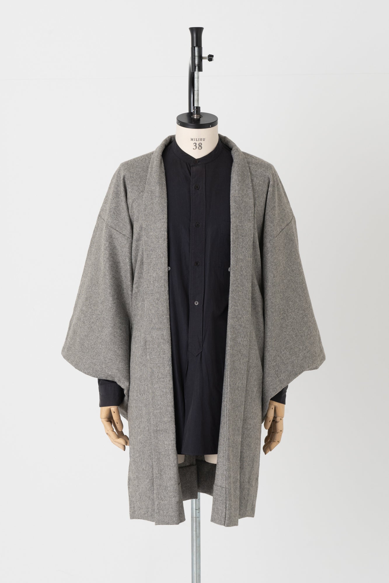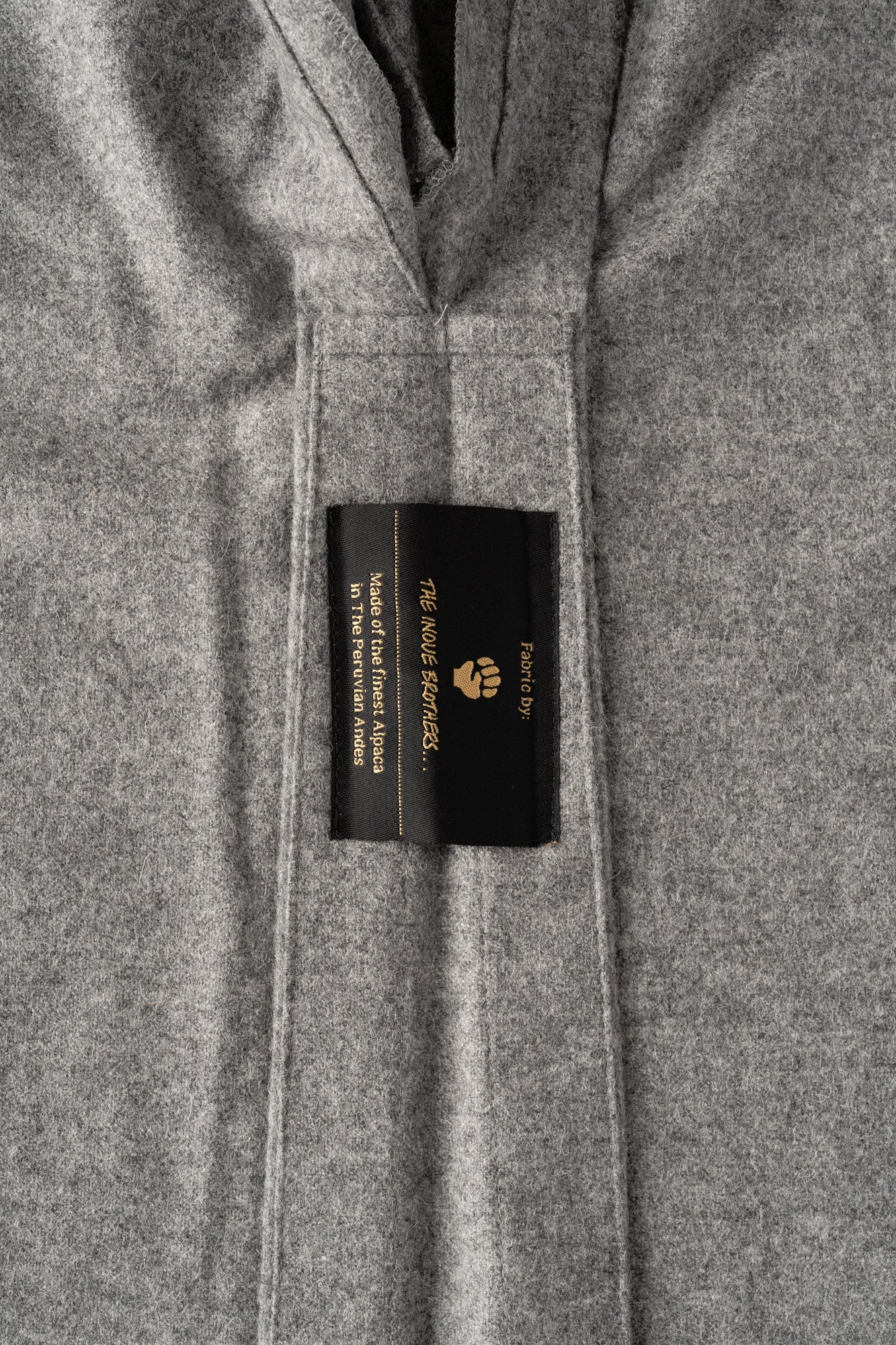 その素材を100%使用した生地は柔らかな肌触りで、軽く暖かいのが特徴です。カラーはライトグレーの1色展開。お客様のご寸法に合わせてマイサイズオーダーにてお仕立てします。
