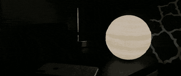 また、よりリアルさを追求するために、スイッチやUSBポートを本体から取り除きました。 ライトのスイッチはタップで、充電はワイヤレス充電対応です。 360度どこから見ても、本物の惑星と変わらない見た目をキープしています。