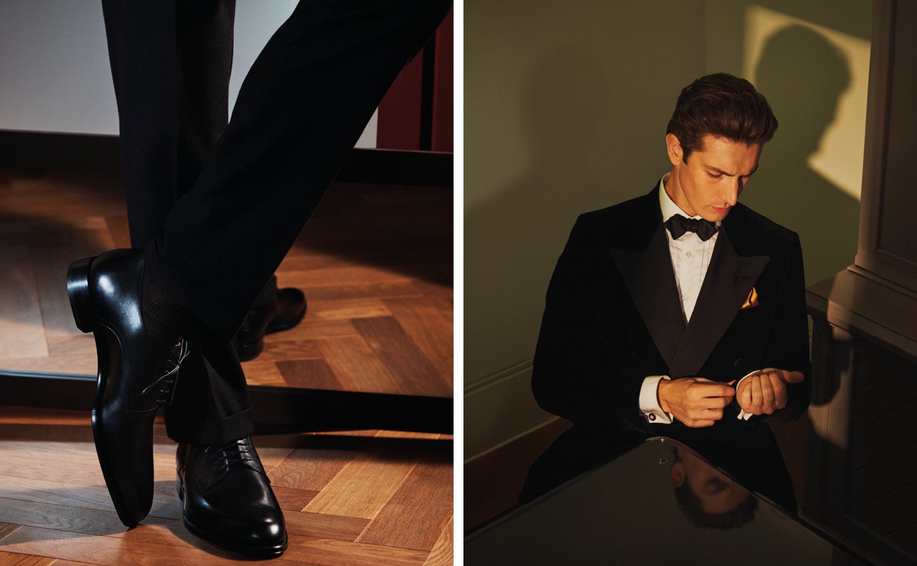 装いを完成させるブラック ケンジントン ダービー シューズは、高級フレンチカーフレザーを使用してイタリアで作られています。精密に設計されたカフリンクスは手首にエレガントな輝きを添え、社交の場で注目の的となるでしょう。