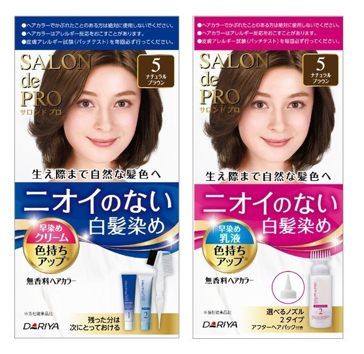 写真左:無香料ヘアカラー 早染めクリーム(白髪用)