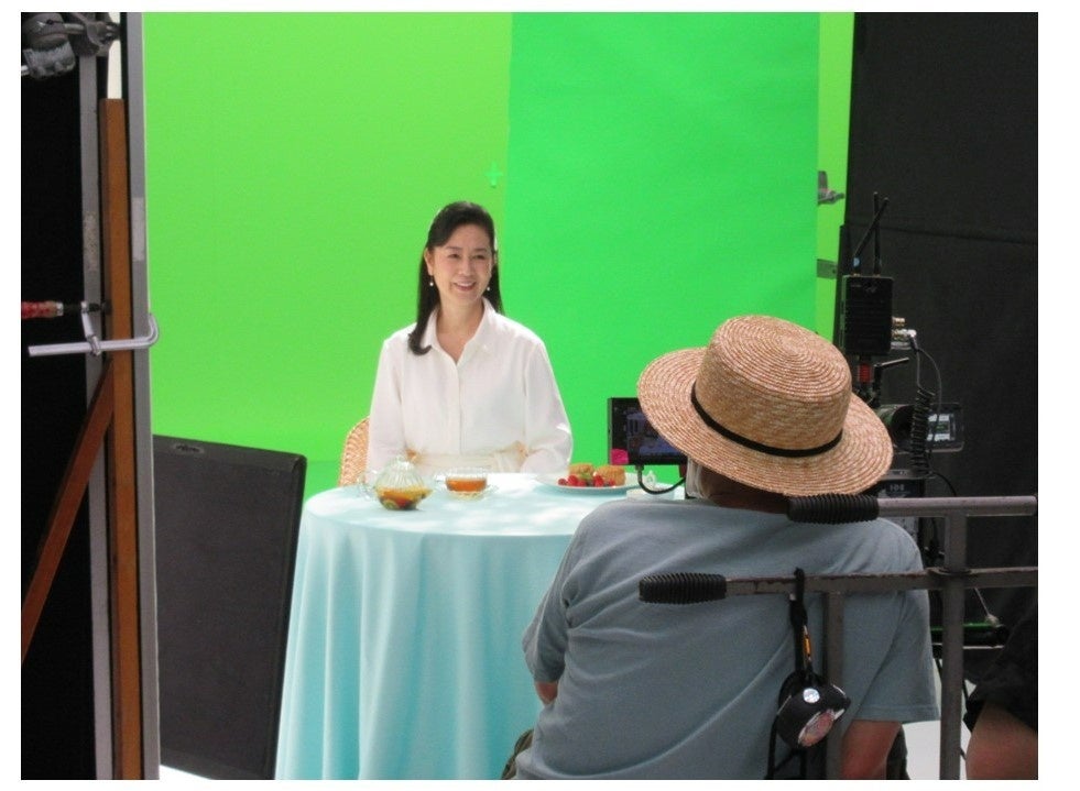 実はこちらのシーンの背景は合成です。明るい日差しの中で優雅にティータイムをしている名取さんを、合成とは思えないほど違和感なく自然な仕上がりで今回表現することができました。