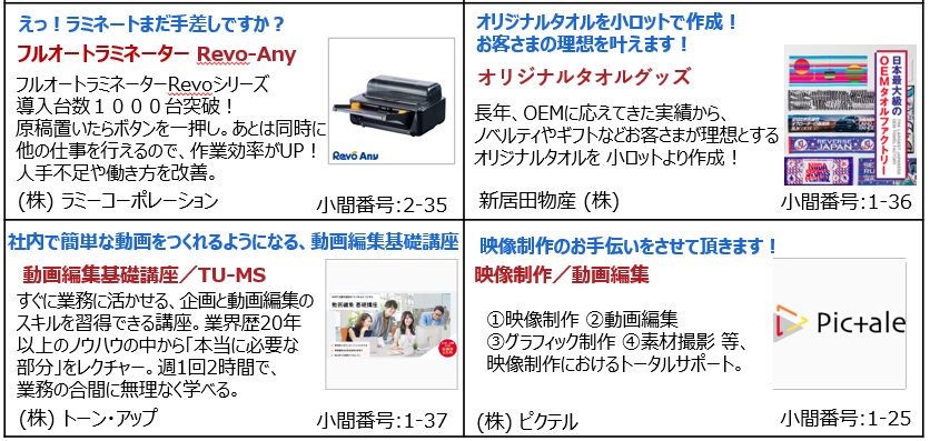 このほかにも、ブランディング・業務効率化・DX推進のための製品・サービスが多数出展!
